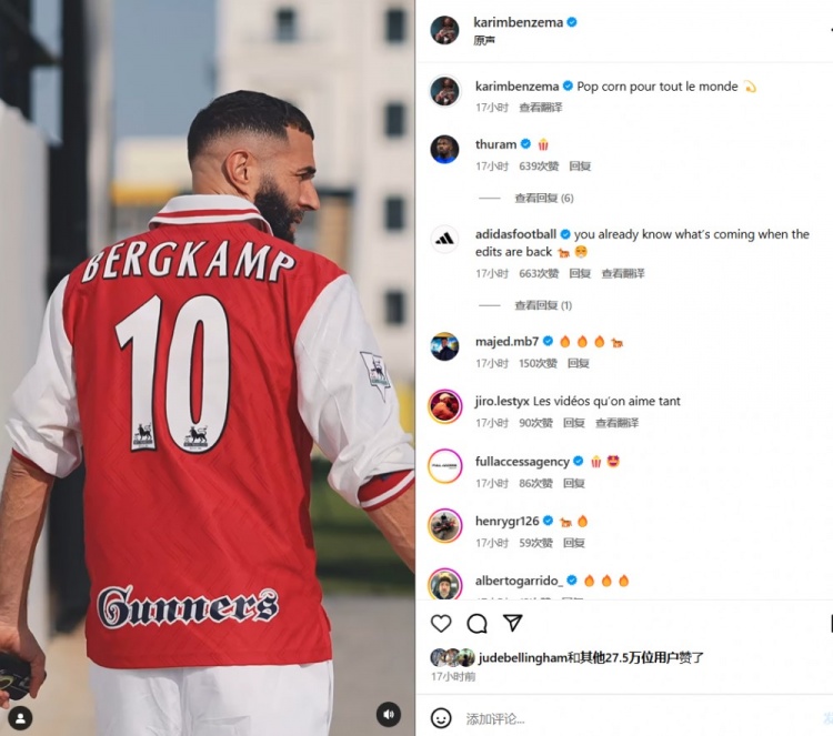 2月4日訊 本澤馬更新了自己的社媒動(dòng)態(tài),曬出了自己在比賽和日常生活中的視頻vlog,其中有本澤馬身穿博格坎普的阿森納復(fù)古球衣的一幕。