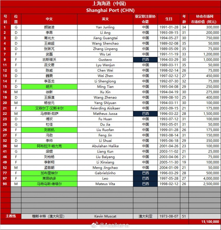 朱藝對報(bào)名名單進(jìn)行注解:1、綠色底紋代表對比第2報(bào)名窗口,此次報(bào)名窗口新增加的球員。2、亞冠精英聯(lián)賽規(guī)定不晚于3月31日前,只要名單不滿35人上限,仍允許補(bǔ)報(bào)2月4日后新轉(zhuǎn)入的球員。3、由于賽制不同,亞冠精英聯(lián)賽球衣號碼、報(bào)名人員不一定與中超完全相同,請注意區(qū)分。4、該名單將生效至本賽季亞冠精英聯(lián)賽結(jié)束。