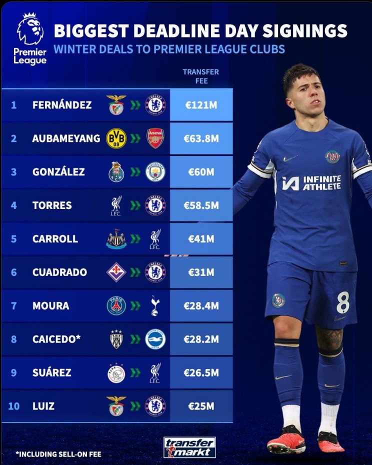 除特別注明外,本站所有內(nèi)容均為九球直播整理排版,轉(zhuǎn)載請(qǐng)注明出處:英超歷史冬窗截止日轉(zhuǎn)會(huì)費(fèi)紀(jì)錄:恩佐1.21億歐居首,岡薩雷斯第三