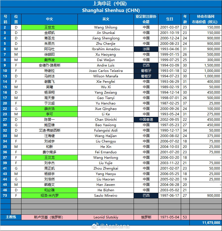 *注:1、綠色底紋代表對(duì)比第2報(bào)名窗口,此次報(bào)名窗口新增加的球員。2、亞冠精英聯(lián)賽規(guī)定不晚于3月31日前,只要名單不滿35人上限,仍允許補(bǔ)報(bào)2月4日后新轉(zhuǎn)入的球員。3、由于賽制不同,亞冠精英聯(lián)賽球衣號(hào)碼、報(bào)名人員不一定與中超完全相同,請(qǐng)注意區(qū)分。4、該名單將生效至本賽季亞冠精英聯(lián)賽結(jié)束。