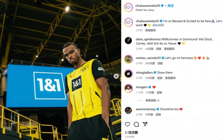 發(fā)布時間:2025年02月05日 02:50點擊:欄目:足球新聞 2月5日訊 楚克烏梅卡在此前已經(jīng)官宣外租多特,他也在今日通過社媒曬出加盟照。楚克烏梅卡通過社媒曬出自己身穿多特球衣現(xiàn)身威斯特法倫球場的照片,并表示:“能夠來到這里,我感到非常榮幸與激動。讓我們開始努力吧!@多特蒙德俱樂部?!?/p>而他的切爾西隊友凱塞多也現(xiàn)身評論區(qū)鼓勵道:“讓我們加油吧,我的兄弟?!?/p> 除特別注明外,本站所有內(nèi)容均為九球直播整理排版,轉(zhuǎn)載請注明出處:楚克烏梅卡社媒曬加盟照“很高興來到多特”,凱塞多送祝福 本文標簽: 足球 切爾西 英超 德甲 多特蒙德