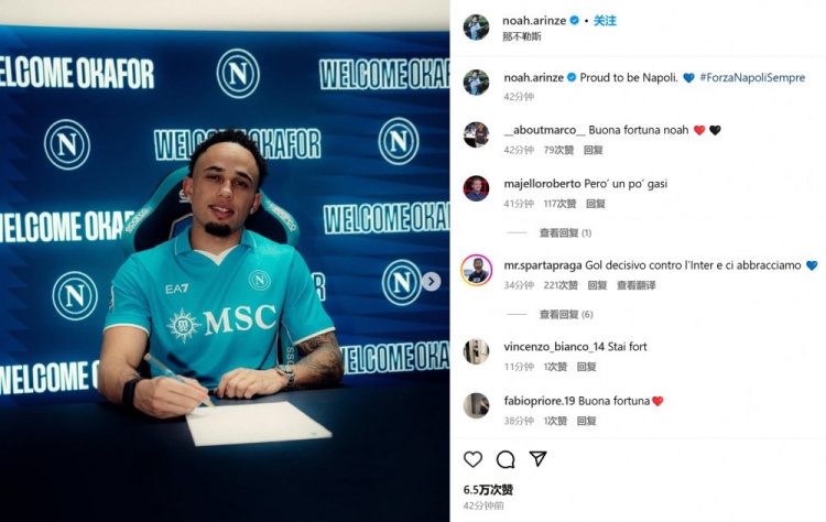 發(fā)布時間:2025年02月05日 05:50點擊:欄目:足球新聞 2月5日訊 米蘭邊鋒奧卡福在冬窗截止日壓哨租借加盟那不勒斯半個賽季,他也通過社媒曬照紀念。奧卡福曬出自己和那不勒斯的簽約照,并表示:“很自豪能夠來到那不勒斯?!备鶕?jù)此前消息,那不勒斯向米蘭支付150萬歐元租借奧卡福,選擇買斷費2350萬歐。24歲的奧卡福司職邊鋒,德轉身價1500萬歐元,本賽季為米蘭各項賽事17場貢獻1球2助攻。 除特別注明外,本站所有內(nèi)容均為九球直播整理排版,轉載請注明出處:被米蘭外租半賽季!奧卡福社媒曬簽約照:很自豪能來到那不勒斯 本文標簽: 足球 意甲 AC米蘭 那不勒斯
