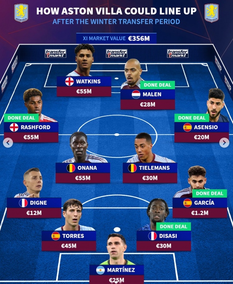 2月5日訊 阿斯頓維拉在今年冬窗引進(jìn)了多位球員,《轉(zhuǎn)會(huì)市場(chǎng)》也據(jù)此預(yù)測(cè)了一套補(bǔ)強(qiáng)后的首發(fā)陣容。