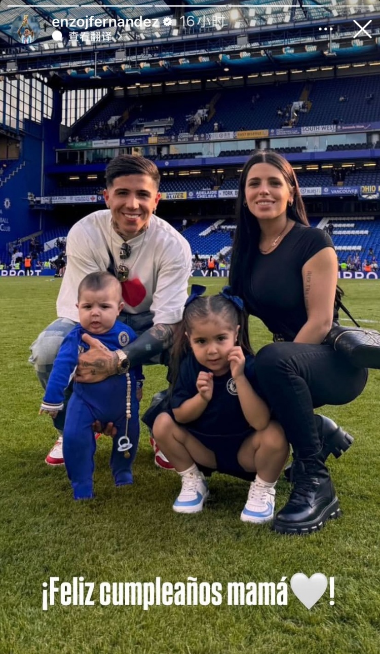 恩佐曬出一家四口的合照,并寫道:生日快樂(lè),媽媽!