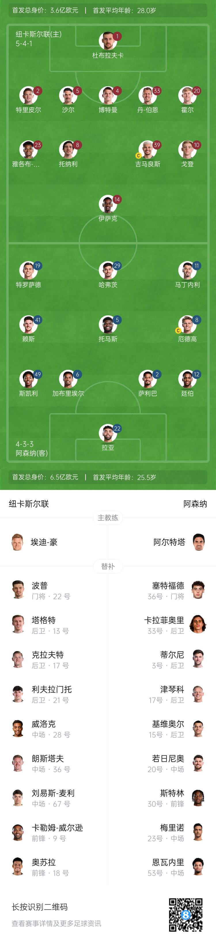 紐卡替補:22-波普、13-塔格特、17-克拉夫特、21-利夫拉門托、28-威洛克、36-朗斯塔夫、67-劉易斯-麥利、9-卡勒姆-威爾遜、18-奧蘇拉