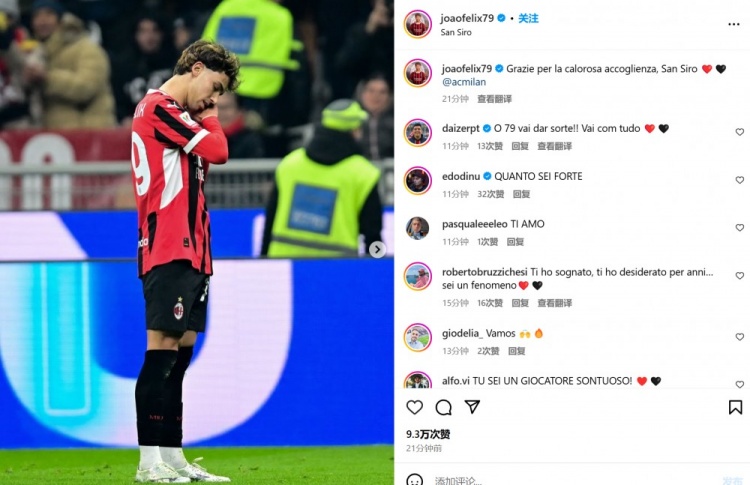 發(fā)布時(shí)間:2025年02月06日 08:50點(diǎn)擊:欄目:足球新聞 2月6日訊 米蘭在本輪意大利杯3-1擊敗羅馬,菲利克斯首秀替補(bǔ)建功。第71分鐘,米蘭兩位冬窗新援替補(bǔ)連線,希門尼斯直塞,菲利克斯單刀破門。他也在賽后通過社媒曬出自己進(jìn)球后的慶祝照,并配文:“謝謝你們的熱烈歡迎,圣西羅?? 除特別注明外,本站所有內(nèi)容均為九球直播整理排版,轉(zhuǎn)載請(qǐng)注明出處:替補(bǔ)建功!菲利克斯社媒紀(jì)念米蘭首秀:謝謝圣西羅的熱烈歡迎 本文標(biāo)簽: 足球 意甲 AC米蘭 羅馬