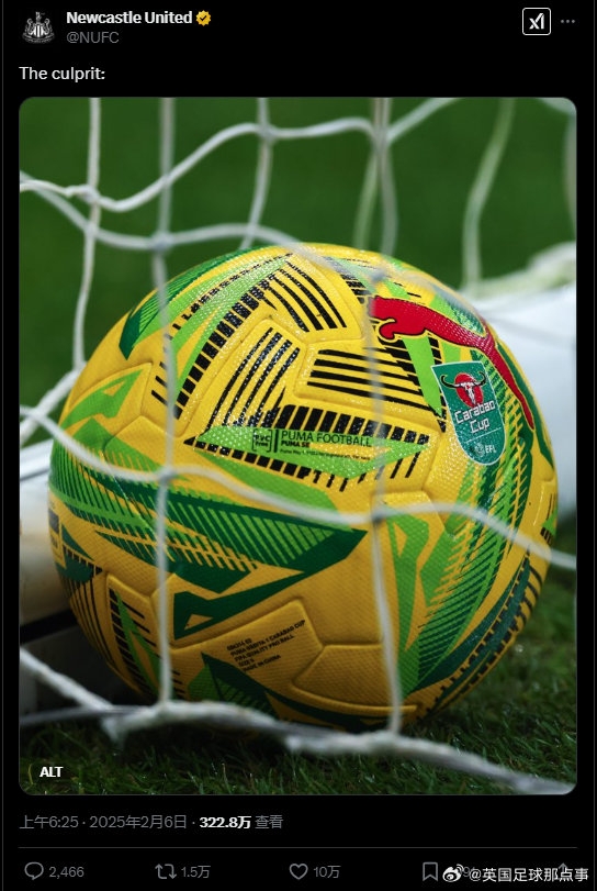 【官方玩梗】聯(lián)賽杯次回合紐卡2-0戰(zhàn)勝阿森納晉級決賽后,紐卡官推曬聯(lián)賽杯用球,配文:罪魁禍?zhǔn)?/p>