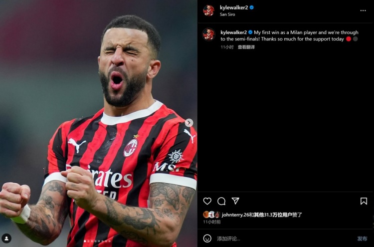 沃克寫道:作為米蘭球員的首場勝利,我們晉級(jí)了半決賽!非常感謝大家今天的支持。