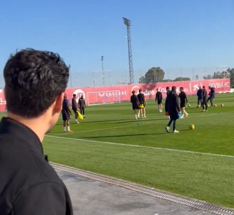 塞維利亞官方還配文寫道:“赫蘇斯-納瓦斯參觀訓練!”