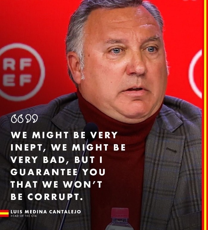 聲明發(fā)布后,裁判委員會(huì)主席路易斯-梅迪納-坎塔萊霍迅速回應(yīng),他在播客中表示,對(duì)于外界的指責(zé)他毫不感到羞愧:“我們不需要為任何事情感到羞愧,我們的團(tuán)隊(duì)沒(méi)有任何腐敗行為。我們可能做得不好,可能很笨拙,但絕對(duì)沒(méi)有腐敗”。