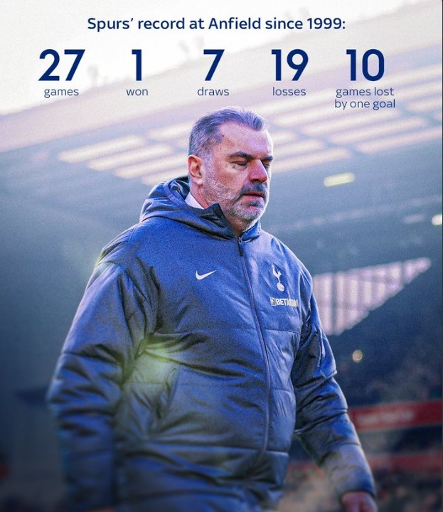 根據(jù)天空體育的數(shù)據(jù)統(tǒng)計(jì),1999年以來,熱刺27次做客安菲爾德僅僅贏下1場比賽,輸?shù)袅似渲械?9場,有10場比賽都是比主隊(duì)少打進(jìn)1球。