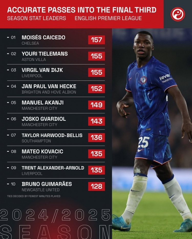 除特別注明外,本站所有內(nèi)容均為九球直播整理排版,轉(zhuǎn)載請(qǐng)注明出處:英超傳球到進(jìn)攻三區(qū)榜:凱塞多壓范迪克居首,曼城3將在列