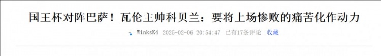 【相關(guān)新聞】:國王杯對陣巴薩!瓦倫主帥科貝蘭:要將上場慘敗的痛苦化作動力