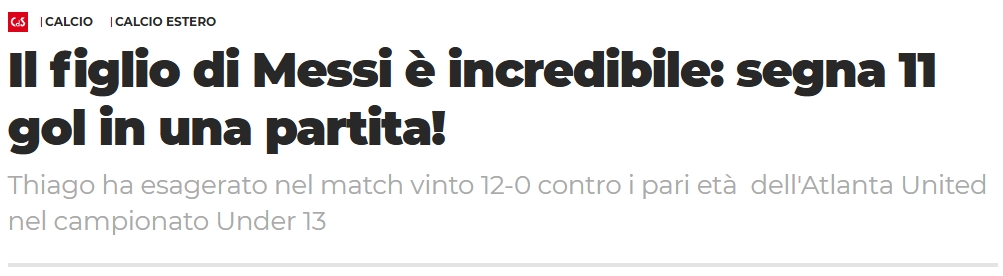 《羅體》標題:梅西的兒子太厲害了,一場比賽轟11球