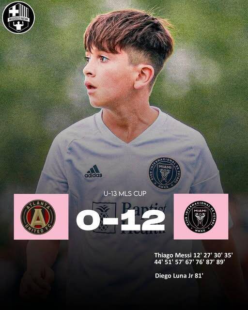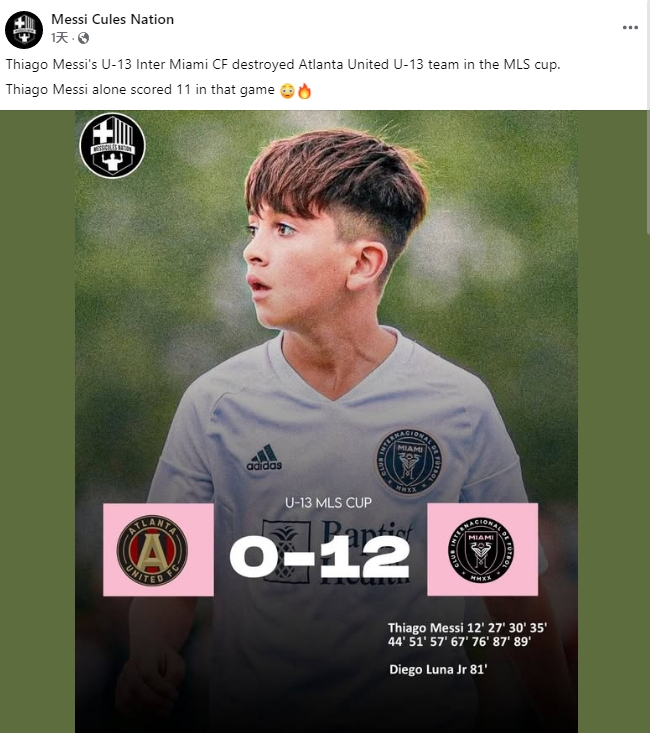 這篇新聞來自球迷號Messi Cules Nation的杜撰,圖中顯示的U13 MLS CUP賽事近期并沒有進行,24-25賽季美職聯(lián)青少年季后賽時間并不是在本月。官網(wǎng)的信息中,邁阿密U13隊伍最近的比賽也沒有對陣亞特蘭大聯(lián)。