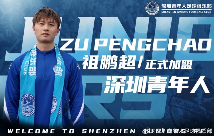 經(jīng)與球員本人友好協(xié)商并達(dá)成一致,祖鵬超正式加盟深圳青年人足球俱樂(lè)部。