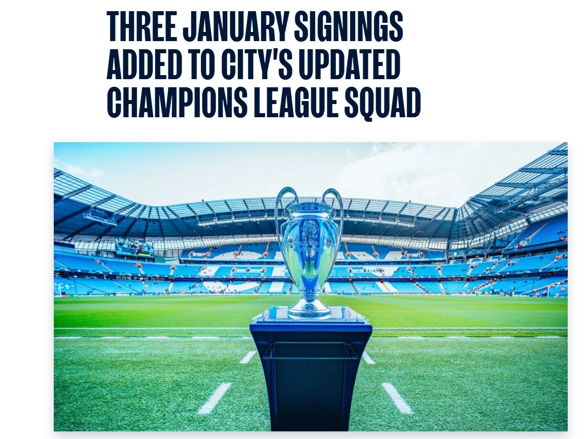 按照歐冠注冊(cè)規(guī)則,下一個(gè)階段最多注冊(cè)3名新援,因此曼城4名新援只能有3名球員入選。