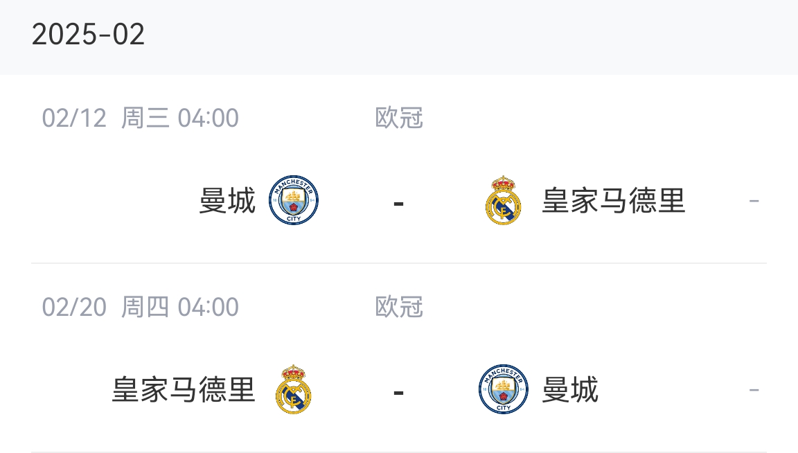 曼城賽程