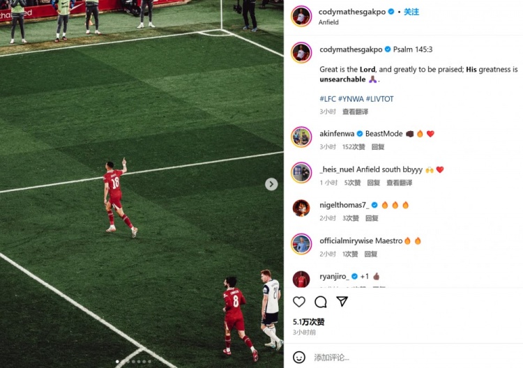而加克波也曬出自己的比賽照,并附上《圣經(jīng)》中的內(nèi)容:“詩(shī)篇145:3。耶和華本為大,該受大贊美,其大無(wú)法測(cè)度。