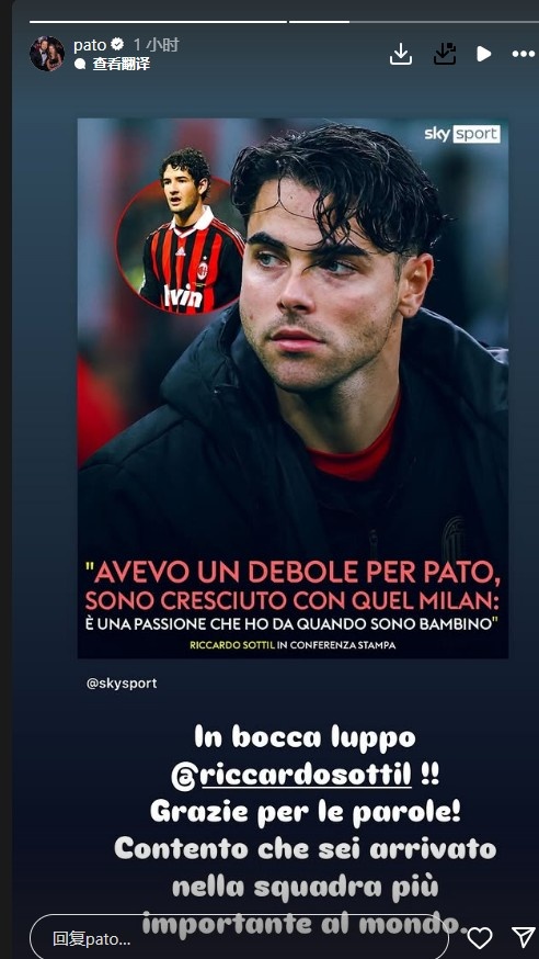 2月7日訊 索蒂爾在冬窗加盟米蘭,接受采訪時(shí),索蒂爾表示自己喜歡帕托、從小就喜歡米蘭,并表示自己就是看著帕托時(shí)期的米蘭長(zhǎng)大的。
