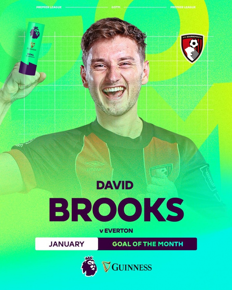 2月7日訊 英超官方宣布,伯恩茅斯邊鋒大衛(wèi)-布魯克斯對(duì)陣埃弗頓的凌空破門,當(dāng)選英超1月最佳進(jìn)球。