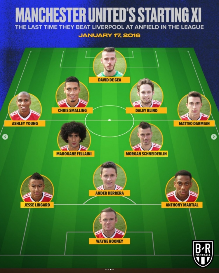 曼聯(lián)上一次在英超客場(chǎng)擊敗利物浦的首發(fā)陣容: