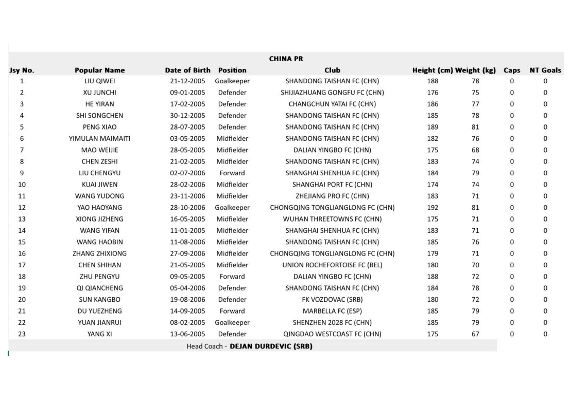 在馬德興公布的最后名單中,中國U20國青在門將位置上,用張皓然替代了原本名單中的袁建銳。