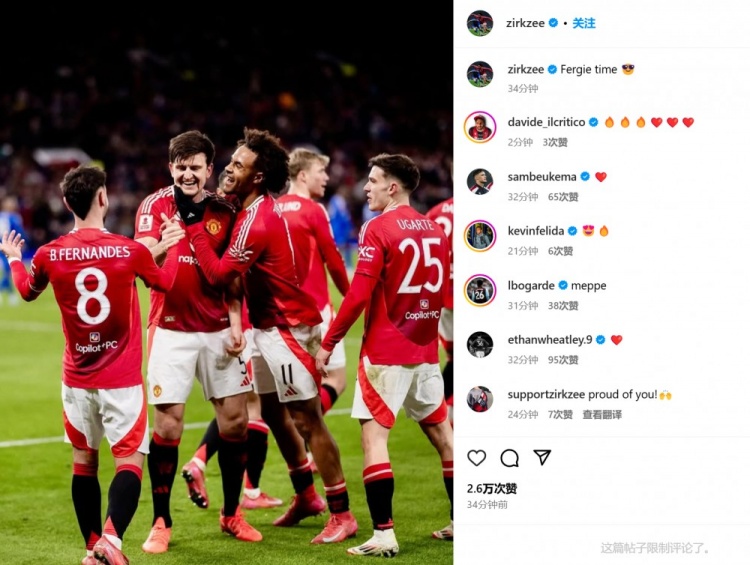 發(fā)布時間:2025年02月08日 23:46點(diǎn)擊:欄目:足球新聞 2月8日訊 憑借馬奎爾在補(bǔ)時階段的越位進(jìn)球,曼聯(lián)在本輪足總杯2-1絕殺萊斯特城。比賽第68分鐘,加納喬左路突破倒三角,霍伊倫第一下打門被擋,替補(bǔ)登場的齊爾克澤補(bǔ)射破門。齊爾克澤也在今日通過社媒曬出自己和絕殺功臣馬奎爾的慶祝合照,并表示:“弗爵時間 除特別注明外,本站所有內(nèi)容均為九球直播整理排版,轉(zhuǎn)載請注明出處:替補(bǔ)打進(jìn)扳平球!齊爾克澤社媒曬和馬奎爾合照:弗格森時間 本文標(biāo)簽: 足球 英超 曼聯(lián) 萊斯特城