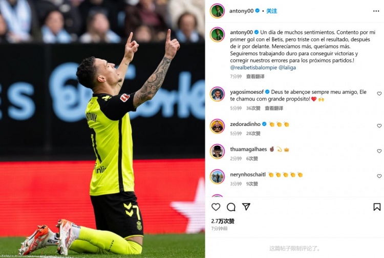 他也在賽后通過社媒曬出自己慶祝進球的照片,并配文:“情緒復(fù)雜的一天!為我打進貝蒂斯生涯處子球感到高興,但也為領(lǐng)先后被翻盤而難過?!?/p>
