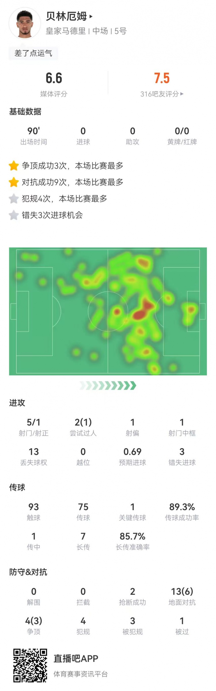 除特別注明外,本站所有內(nèi)容均為九球直播整理排版,轉(zhuǎn)載請注明出處:貝林厄姆本場5射1正1中框+3次錯失良機(jī) 4犯規(guī)3造犯規(guī) 獲評6.6分