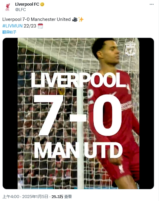 發(fā)布時間:2025年01月05日 10:50點擊:欄目:足球新聞 01月05日訊 北京時間1月6日凌晨00:30,利物浦將在安菲爾德迎戰(zhàn)曼聯(lián)。利物浦官推已經(jīng)開始預熱本場比賽,在北京時間今日凌晨曬出了22-23賽季主場7-0狂勝曼聯(lián)的集錦。 除特別注明外,本站所有內容均為九球直播整理排版,轉載請注明出處:“犯罪”預告?雙紅會在即,利物浦官推開曬7-0曼聯(lián)的集錦 本文標簽: 足球 英超 利物浦 曼聯(lián)
