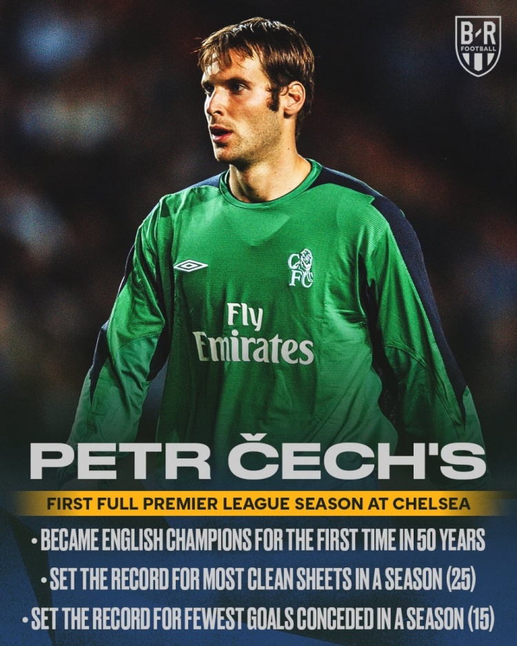 切赫在2004年夏天以1300萬(wàn)歐元從雷恩加盟切爾西,當(dāng)賽季他為切爾西鎮(zhèn)守球門(mén),單賽季英超僅丟15球且共計(jì)完成25場(chǎng)零封,隨隊(duì)贏得了切爾西50年來(lái)首座頂級(jí)聯(lián)賽冠軍。