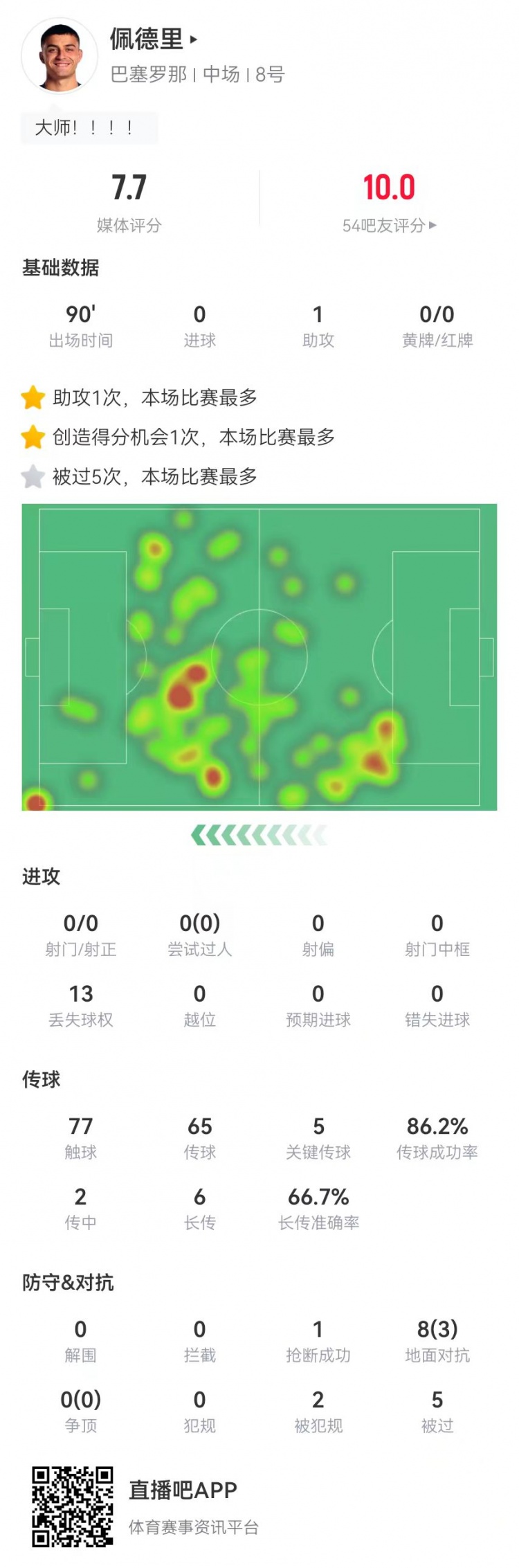發(fā)布時間:2025年02月10日 06:50點擊:欄目:足球新聞 2月10日訊 巴薩在本輪西甲4-1擊敗塞維利亞,佩德里本場數(shù)據(jù)如下:首發(fā)踢滿全場1助攻預(yù)期助攻0.7677觸球65傳球、56成功,成功率86%5關(guān)鍵傳球2傳中、0成功6長傳、4成功1創(chuàng)造重大機會7對抗、3成功14丟失球權(quán)2造犯規(guī)1搶斷4被過獲評7.7分 除特別注明外,本站所有內(nèi)容均為九球直播整理排版,轉(zhuǎn)載請注明出處:佩德里本場1助攻+5關(guān)鍵傳球+1造良機 6長傳4成功+2造犯規(guī) 獲7.7分 本文標(biāo)簽: 足球 西甲 巴塞羅那 塞維利亞