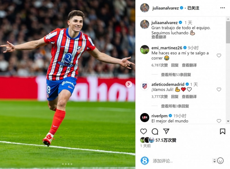 發(fā)布時間:2025年02月10日 07:50點擊:欄目:足球新聞 2月10日訊 西甲第23輪比賽,阿爾瓦雷斯勺子點球破門,幫助馬競客場1-1戰(zhàn)平皇馬。阿爾瓦雷斯社媒曬照,阿根廷門將大馬丁留言調(diào)侃道:“如果你敢這樣對我,我會追著你跑?!?/p> 除特別注明外,本站所有內(nèi)容均為九球直播整理排版,轉(zhuǎn)載請注明出處:大馬丁社媒調(diào)侃小蜘蛛勺子點球:若你敢這樣對我,我會追著你跑 本文標簽: 足球 西甲 馬德里競技 英超 阿斯頓維拉