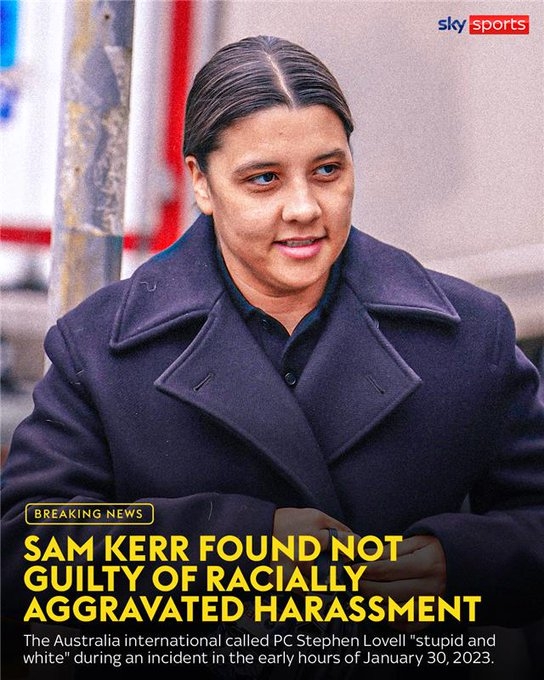 這位澳大利亞女足國腳于2023年1月30日凌晨在倫敦西南部與倫敦警察廳警官斯蒂芬-洛弗爾發(fā)生沖突時,稱對方為"愚蠢的白人"。當(dāng)?shù)鼗始曳ㄔ号銓張F在當(dāng)?shù)貢r間周二經(jīng)過4小時17分鐘審議后,作出無罪判決。