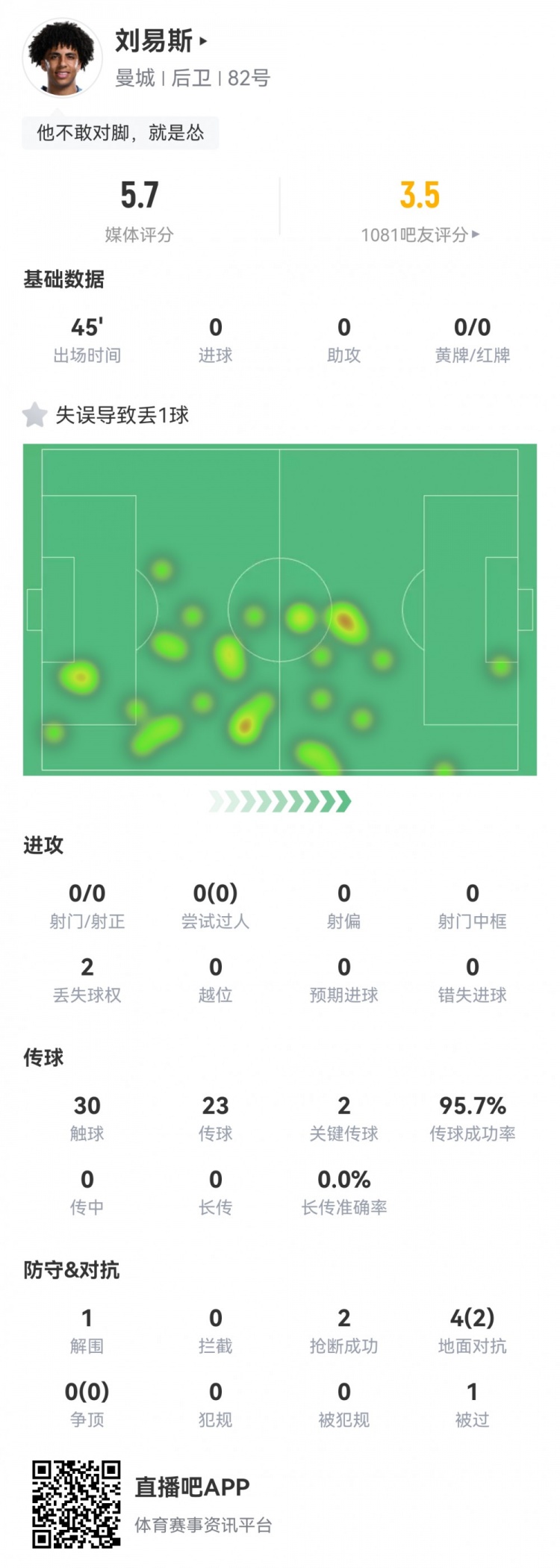 發(fā)布時間:2025年02月12日 06:50點擊:欄目:足球新聞 2月12日訊 歐冠淘汰賽附加賽首回合,曼城主場2-3遭皇馬絕殺。此役劉易斯替補登場45分鐘補時送禮,球員全場重點數(shù)據(jù)如下↓0射0正0過人2次丟失球權30次觸球傳球成功率95.7%2次關鍵傳球4次對抗成功2次2次搶斷評分5.7 除特別注明外,本站所有內容均為九球直播整理排版,轉載請注明出處:又是你劉易斯數(shù)據(jù):補時送禮致丟球遭絕殺,2關鍵傳球評分5.7 本文標簽: 足球 英超 曼城 歐冠