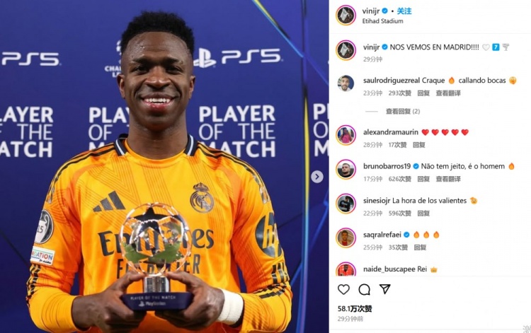 發(fā)布時(shí)間:2025年02月12日 07:50點(diǎn)擊:欄目:足球新聞 2月12日訊 皇馬在本輪歐冠客場3-2逆轉(zhuǎn)曼城,維尼修斯表現(xiàn)搶眼并當(dāng)選全場最佳球員。維尼修斯在本場比賽送出絕殺助攻,全場更是有1次擊中門框并5次創(chuàng)造機(jī)會(huì)。他也在賽后通過社媒曬出自己手捧全場最佳獎(jiǎng)杯的照片,并配文:“我們馬德里再見!” 除特別注明外,本站所有內(nèi)容均為九球直播整理排版,轉(zhuǎn)載請(qǐng)注明出處:用表現(xiàn)回?fù)舫爸S!維尼修斯社媒曬全場最佳獎(jiǎng)杯:馬德里再見! 本文標(biāo)簽: 足球 英超 曼城 西甲 皇家馬德里 歐冠