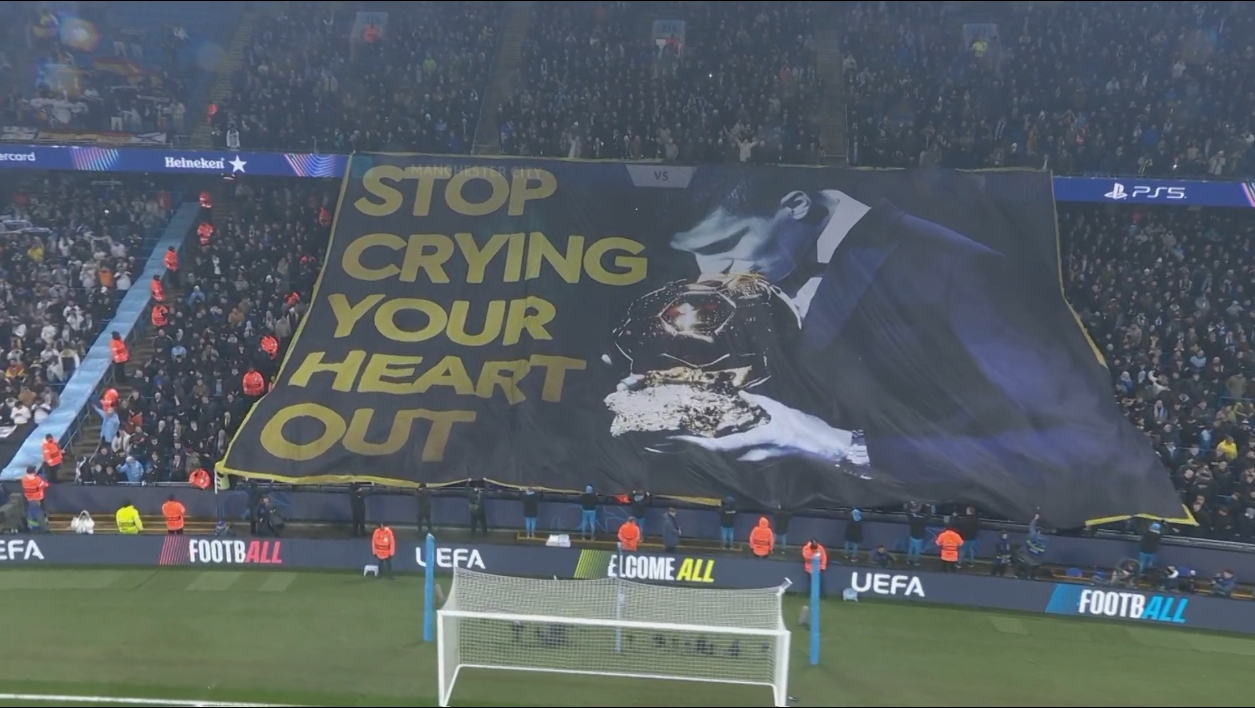 曼城球迷打出羅德里親吻金球獎(jiǎng)TIFO:收起你的眼淚!
