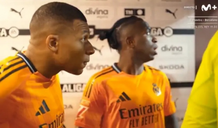 1月5日訊 在皇馬2-1逆轉戰(zhàn)勝瓦倫的比賽中,Movistar+拍攝到了半場0-1落后時,姆巴佩和維尼修斯在球員通道中的對話。