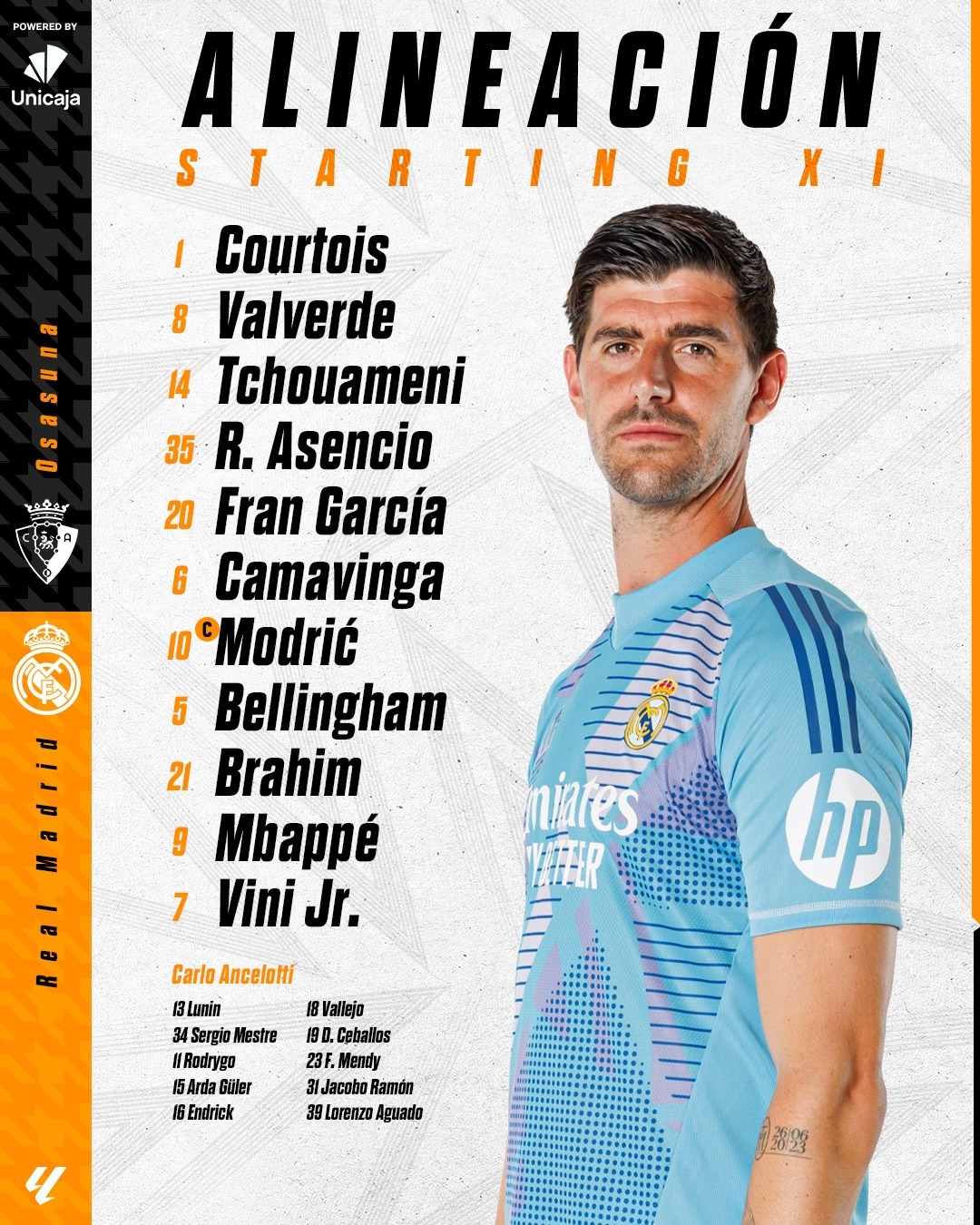 除特別注明外,本站所有內容均為九球直播整理排版,轉載請注明出處:皇馬客戰(zhàn)奧薩蘇納首發(fā):莫德里奇隊長,姆貝維先發(fā)82、卡馬出戰(zhàn)
