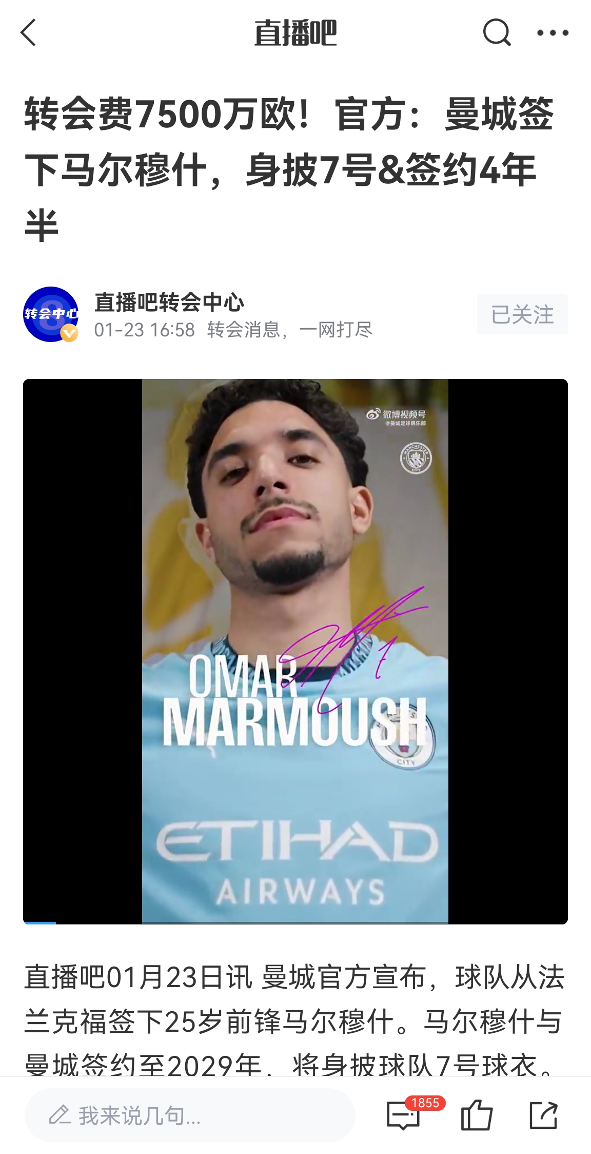 發(fā)布時(shí)間:2025年02月15日 23:50點(diǎn)擊:欄目:足球新聞 02月15日訊 曼城vs紐卡第19分鐘、第24分鐘和第33分鐘,馬爾穆什獨(dú)中三元,不僅完成了曼城處子球,而直接完成了加盟曼城的首次雙響和首次帽子戲法!上個(gè)月曼城多次報(bào)價(jià)馬爾穆什,幾度加價(jià),最終以7500萬歐元的轉(zhuǎn)會(huì)費(fèi)簽下身價(jià)6000萬歐元的馬爾穆什。 除特別注明外,本站所有內(nèi)容均為九球直播整理排版,轉(zhuǎn)載請注明出處:7500萬貴不貴?馬爾穆什14分鐘內(nèi)打入曼城第1、第2、第3球! 本文標(biāo)簽: 足球 英超 曼城 德甲 法蘭克福
