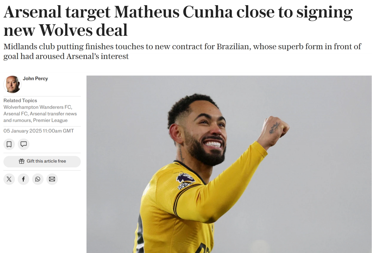 阿森納此前對(duì)庫(kù)尼亞表現(xiàn)出了興趣,本賽季至今他已經(jīng)在英超交出10球4助攻的答卷。然而狼隊(duì)從未擔(dān)心被挖角,幾周以來(lái)他們一直努力與庫(kù)尼亞達(dá)成協(xié)議。