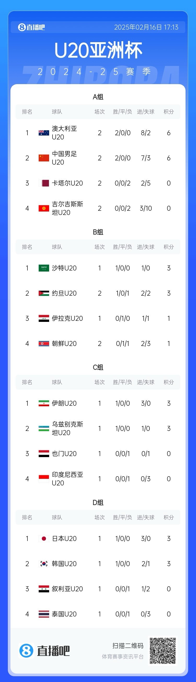 除特別注明外,本站所有內(nèi)容均為九球直播整理排版,轉(zhuǎn)載請(qǐng)注明出處:U20亞洲杯B組:朝鮮1-2不敵約旦,兩輪1分暫列B組末尾