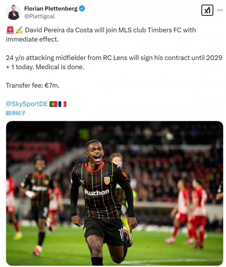 普萊滕伯格指出,大衛(wèi)-科斯塔將立即加盟波特蘭伐木工,轉(zhuǎn)會費(fèi)700萬歐元。大衛(wèi)-科斯塔已經(jīng)完成體檢,今天將簽署期限到2029年的合同,其中還包含1年選擇續(xù)約條款。