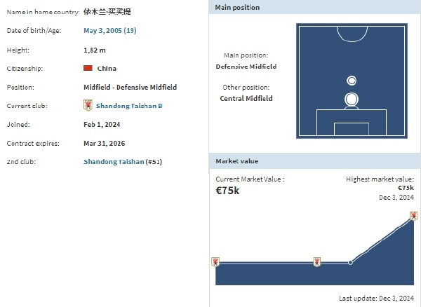 這支國青隊陣中,另外一名得到廣泛好評的球員是中場的依木蘭。來自于山東泰山青訓的他,雖然只有19歲,不過球風已經(jīng)非常成熟。