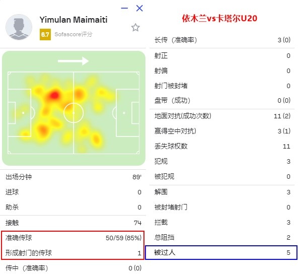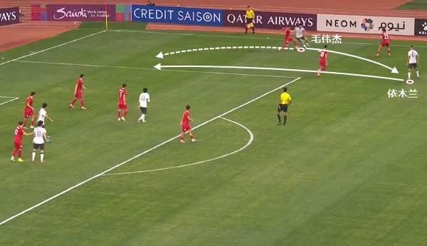 依木蘭最被球迷津津樂道的一幕,就是發(fā)生在跟卡塔爾U20的比賽里。當時依木蘭用一個布斯克茨式轉(zhuǎn)身完成變向,隨后送出直塞球給到隊友陳澤仕,帶來了隨后的反擊機會。