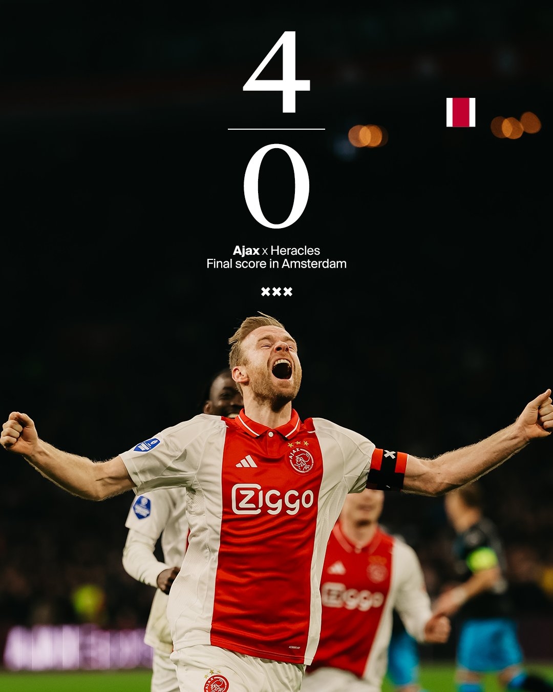 02月17日訊 荷甲第23輪,阿賈克斯4-0大勝赫拉克勒斯,聯(lián)賽7連勝的同時,在少賽一輪的情況下,2分領(lǐng)跑荷甲。