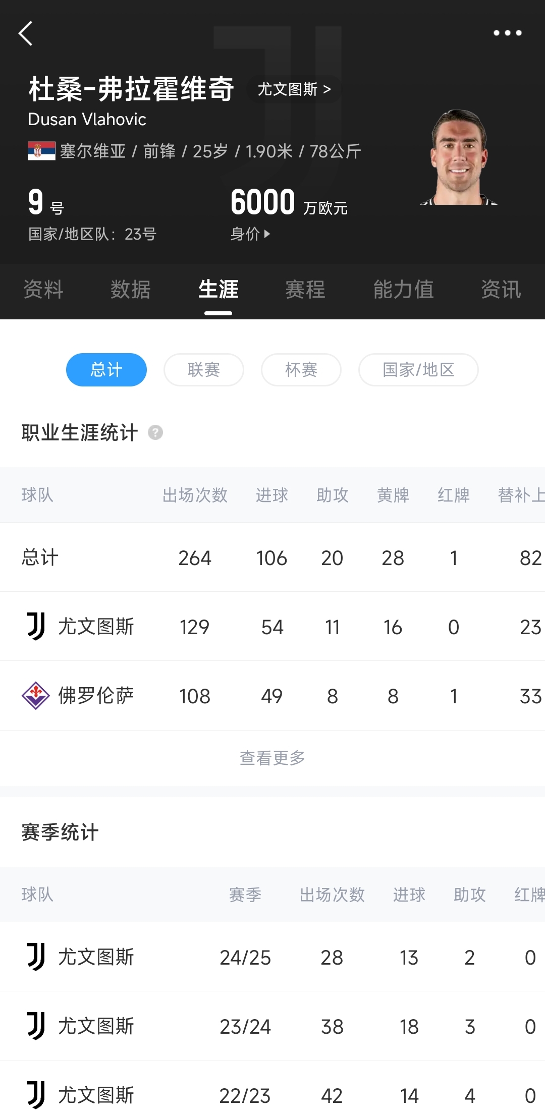 2022年冬窗,尤文以8350萬歐元的轉(zhuǎn)會費從佛羅倫薩簽下弗拉霍維奇,簽約至2026年。迄今弗拉霍維奇代表尤文出戰(zhàn)130場比賽,貢獻(xiàn)54球11助。目前弗拉霍維奇在尤文的稅后年薪為1200萬歐元,高居隊內(nèi)薪資榜首(第二的布雷默500萬歐元)。