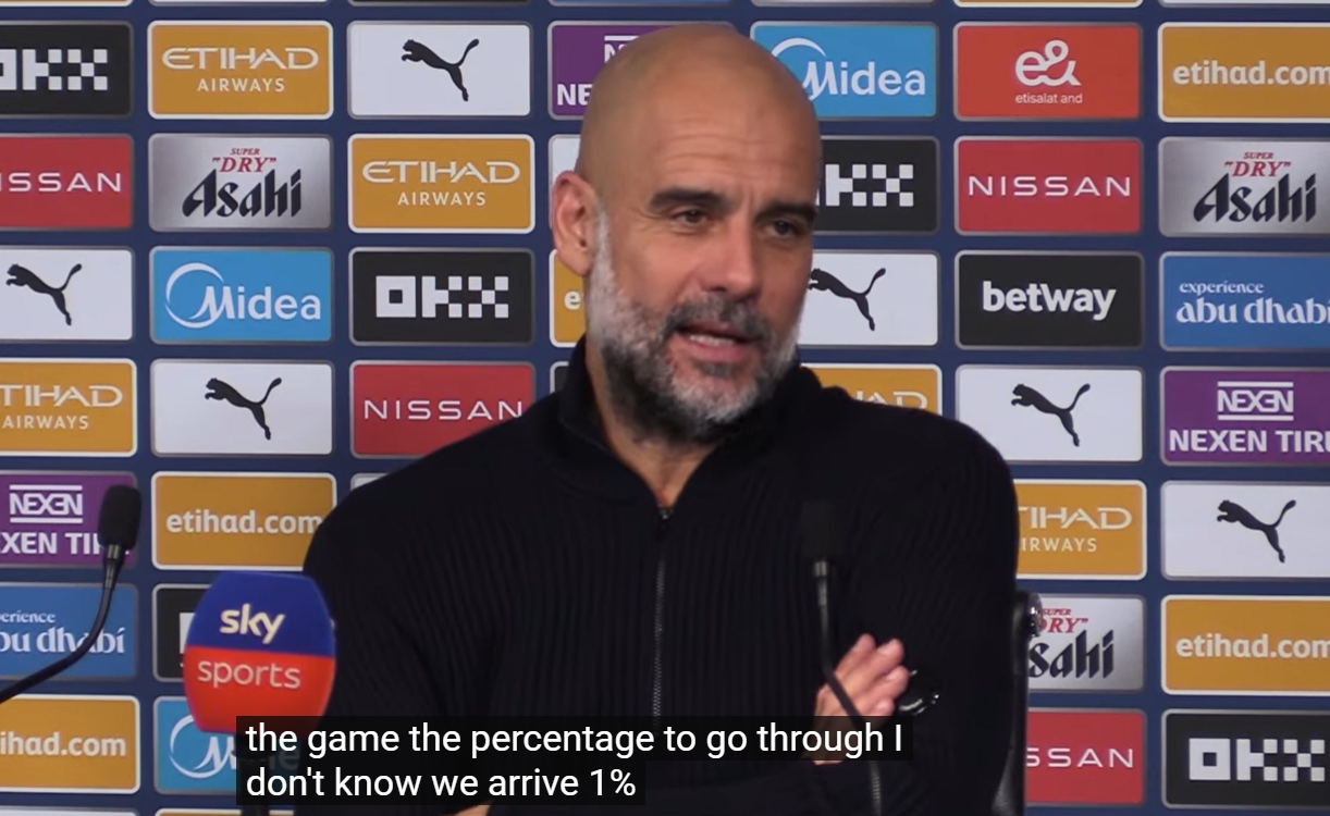 瓜迪奧拉表示:“在這種情況下(總分3-2 落后)去伯納烏贏球,每個人都知道有多難,如果你在比賽前問,晉級的概率是多少,我不知道,我們給出的答案是1%,或者我不知道是多少。”