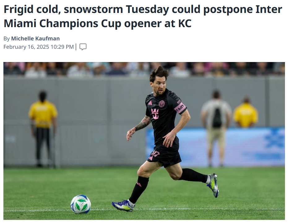 02月17日訊 據(jù)《邁阿密先驅(qū)報(bào)》報(bào)道,中北美聯(lián)冠軍杯首輪邁阿密國(guó)際客戰(zhàn)堪薩斯城競(jìng)技的比賽可能因?yàn)闃O端天氣推遲。